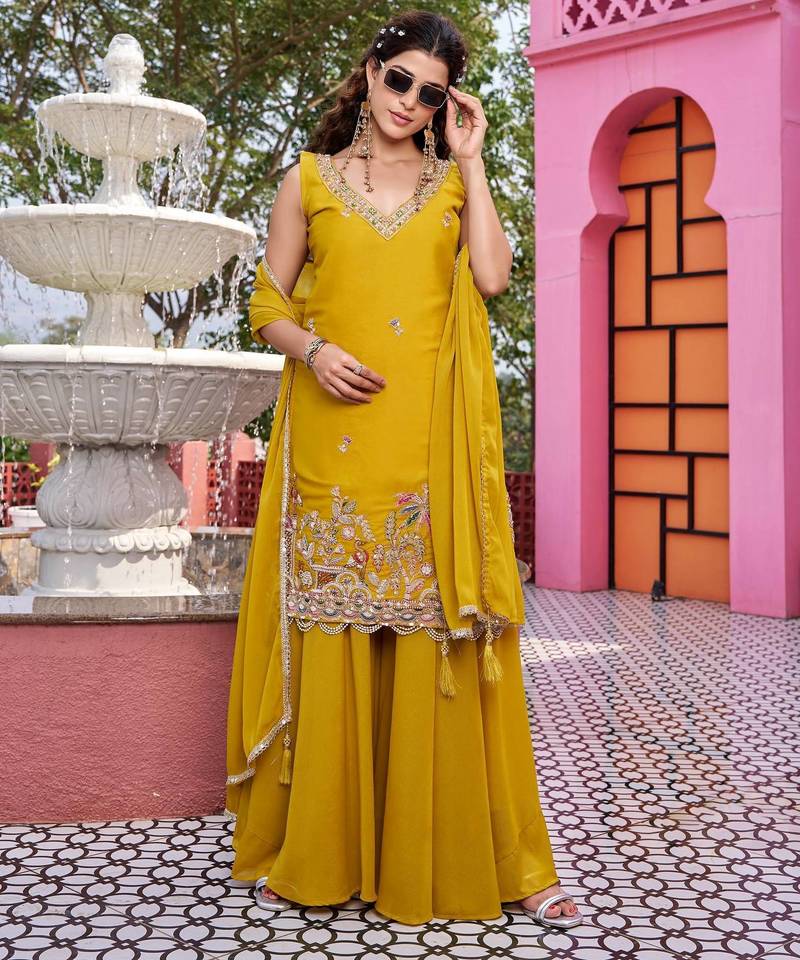 | • | Dupatta | : | Color- Yellow / Fabric- Georgette |