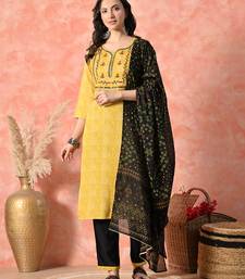 Bandhani printed regular thread work kurta with trousers & dupatta