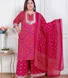 | Product Name | Plus Size Women's Pink Bandhani Printed Straight Kurta With Palazzo & Dupatta | |