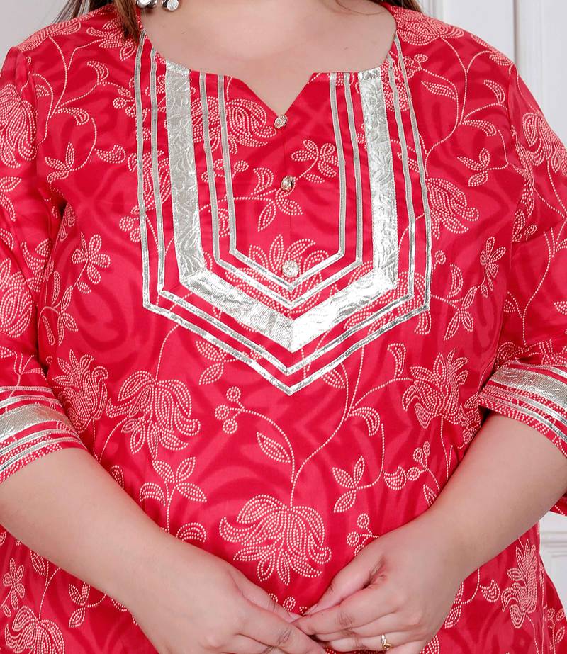 | Product Name | Plus Size Women's Red Cotton Gota Work Kurta With Palazzo | |