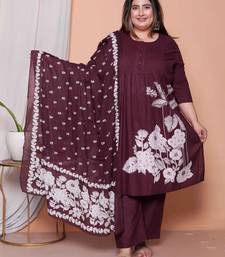 womens plus size wine floral kurta with palazzo and dupatta set stitched