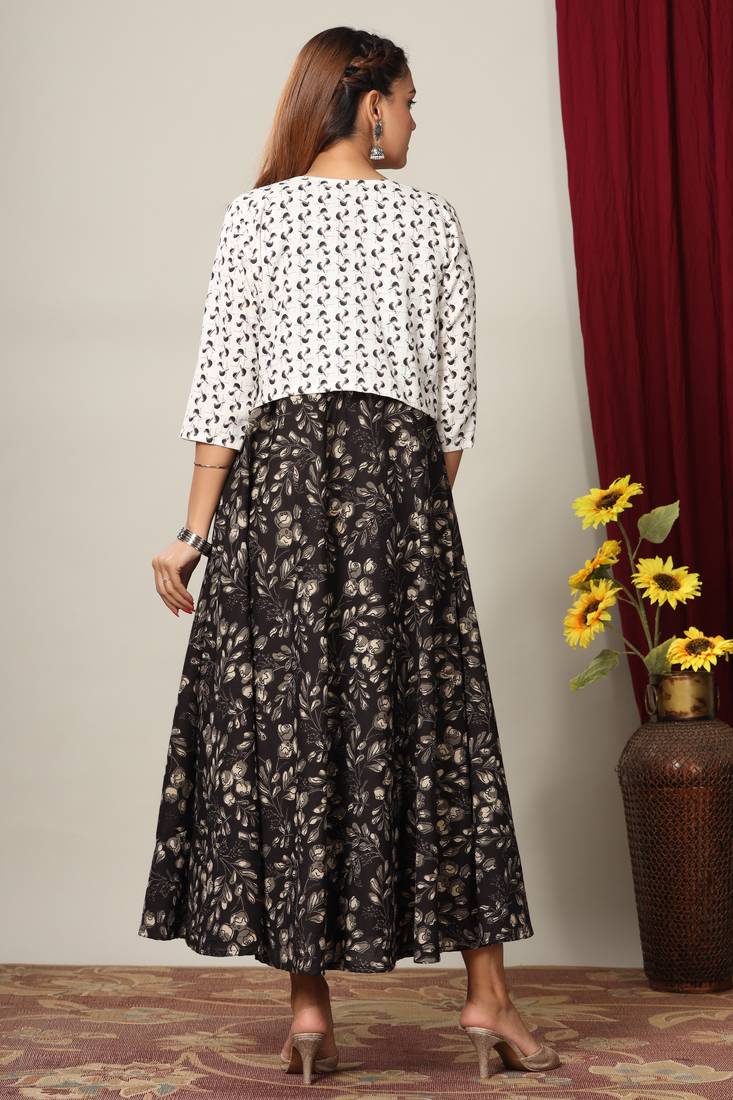 Womens anarkali jaipuri cotton floral print long kurti with jacket