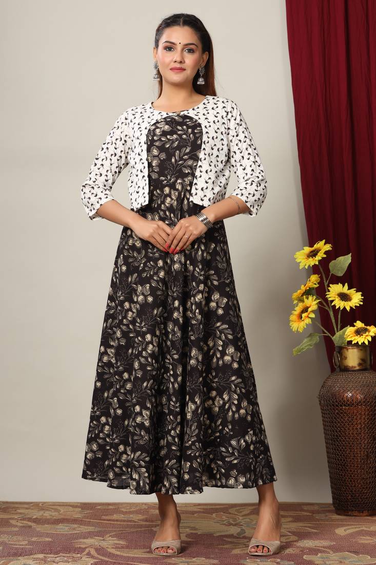 | Product Name | Womens Anarkali Jaipuri Cotton Floral Print Long Kurti With Jacket | |
