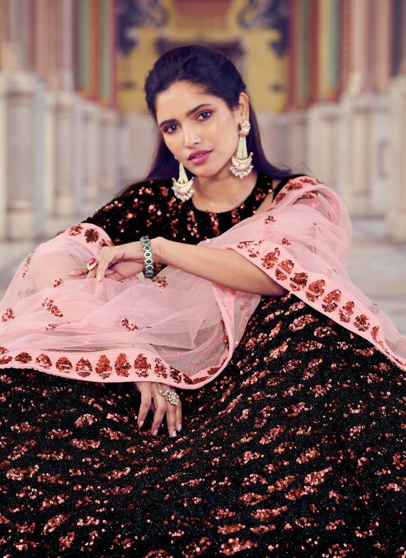 | Product Name | Black Color Wedding Wear Lehenga With Maroon Sequins | |