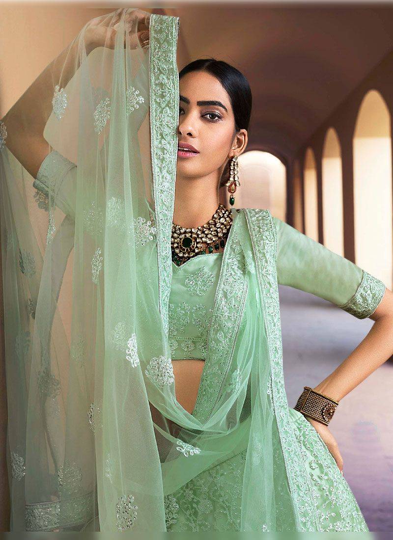 | Product Name | Super Cool Sea Green Colored Soft Net Base Stylish Lehenga Choli | |