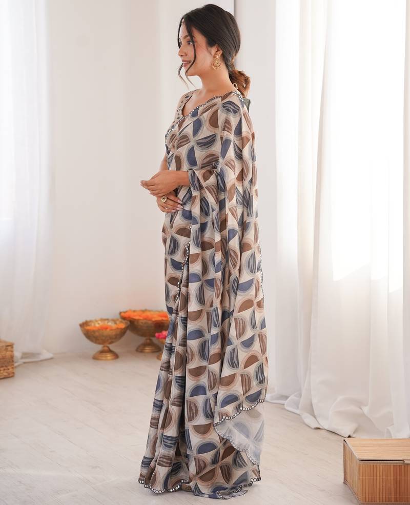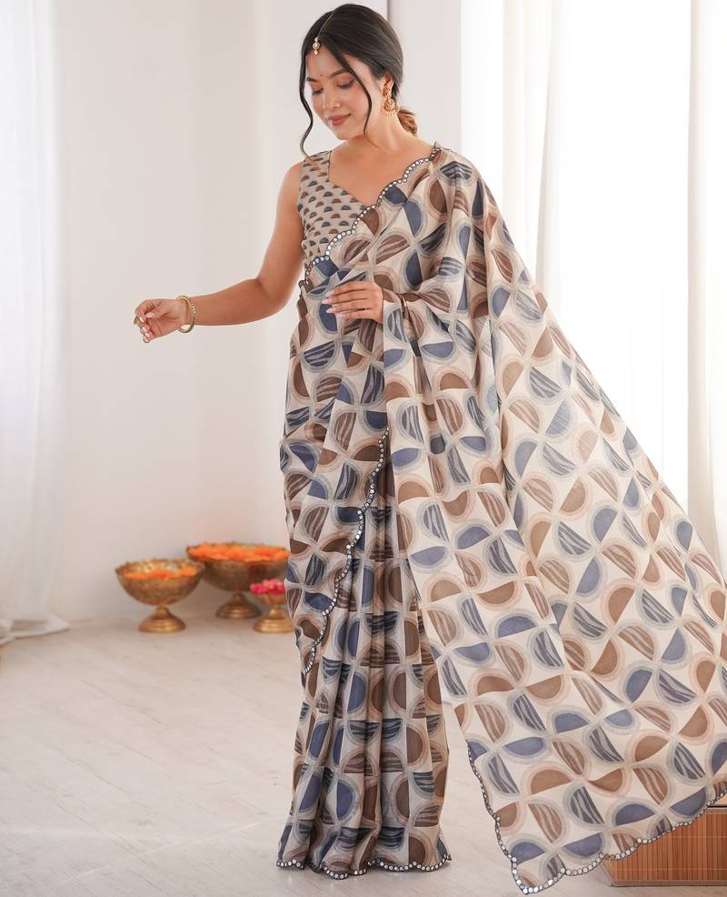 | Product Name | Chiffon Digital Print Scallped Border Foil Mirror Work Saree | |