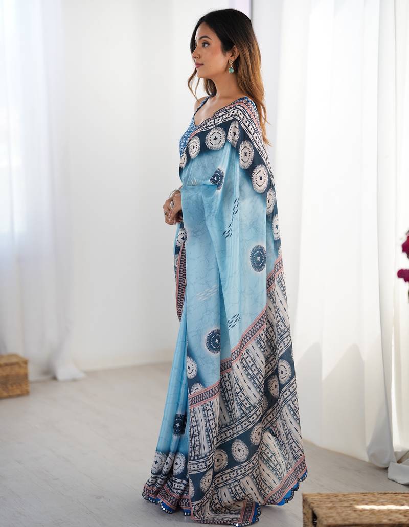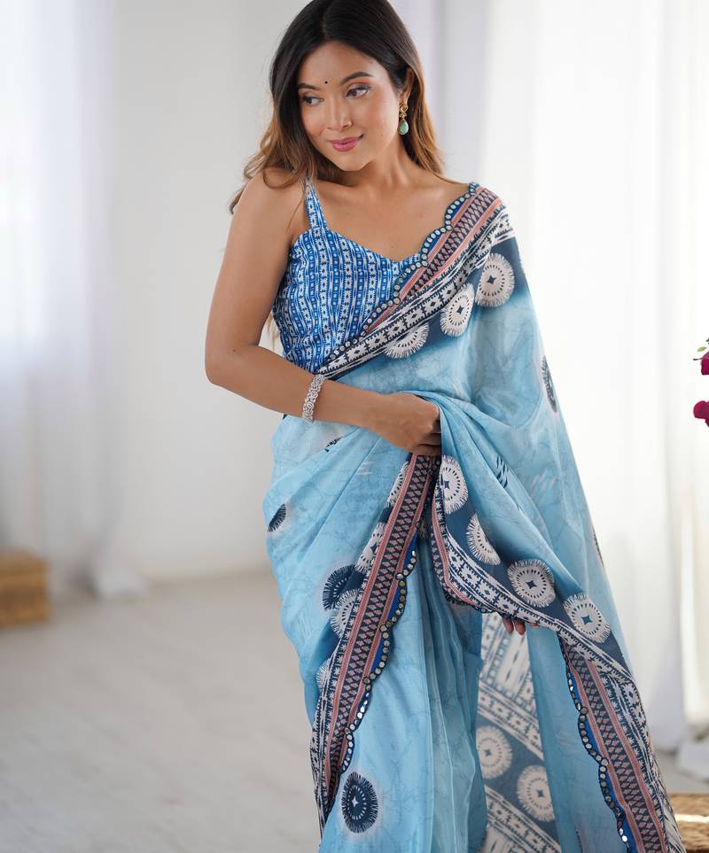 | Product Name | Chiffon Digital Print Scallped Border Foil Mirror Work Saree | |