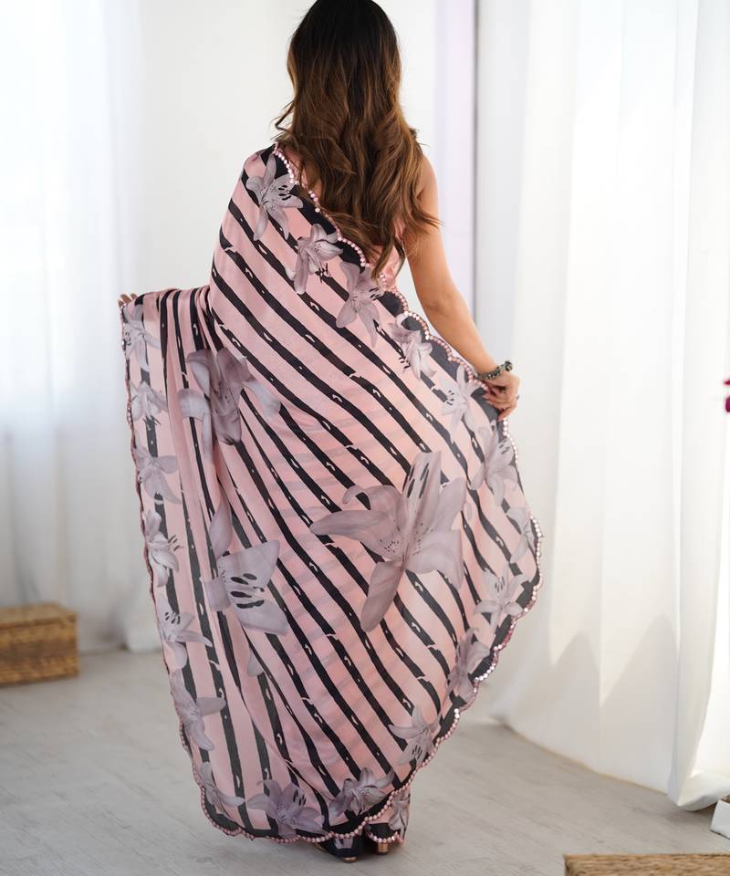| Product Name | Chiffon Digital Print Scallped Border Foil Mirror Work Saree | |