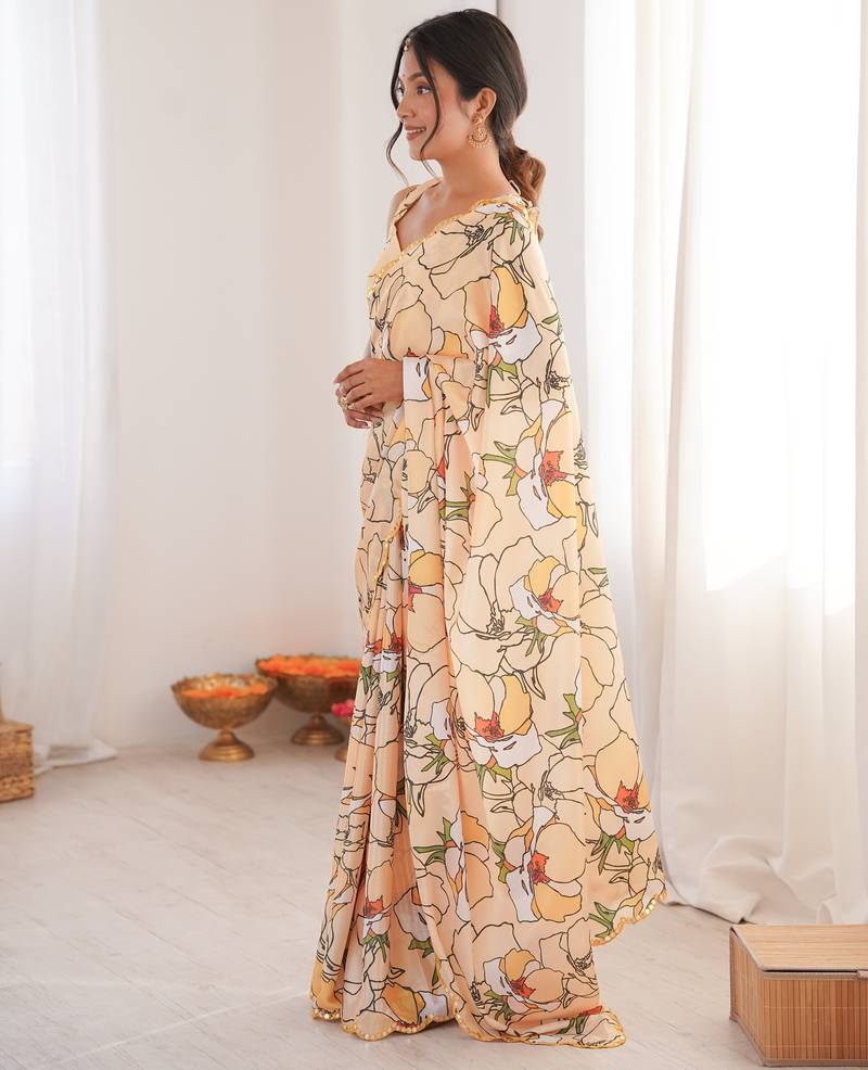 | Product Name | Chiffon Digital Print Scallped Border Foil Mirror Work Saree | |