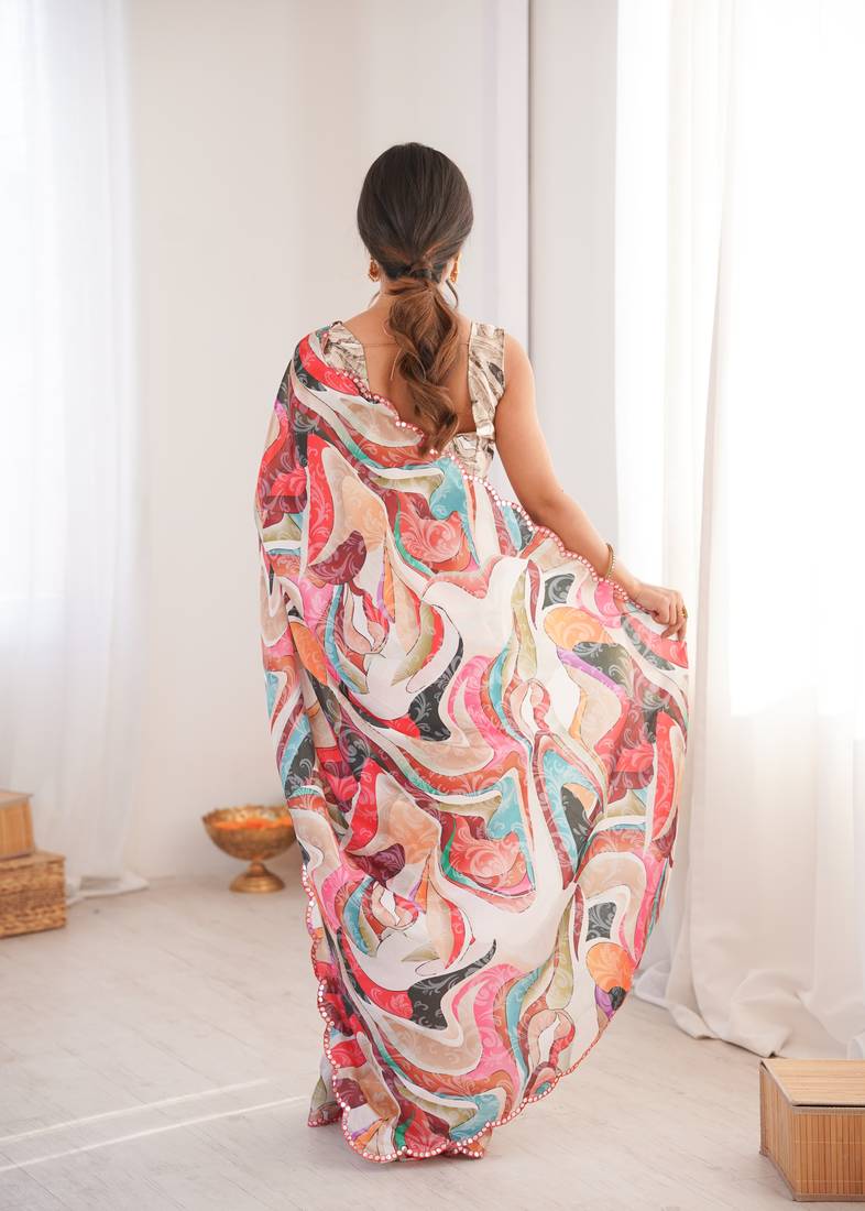 | Product Name | Chiffon Digital Print Scallped Border Foil Mirror Work Saree | |