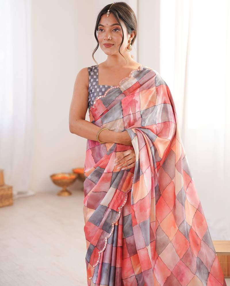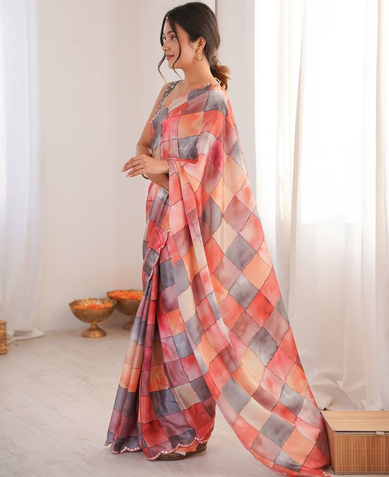 | Product Name | Chiffon Digital Print Scallped Border Foil Mirror Work Saree | |