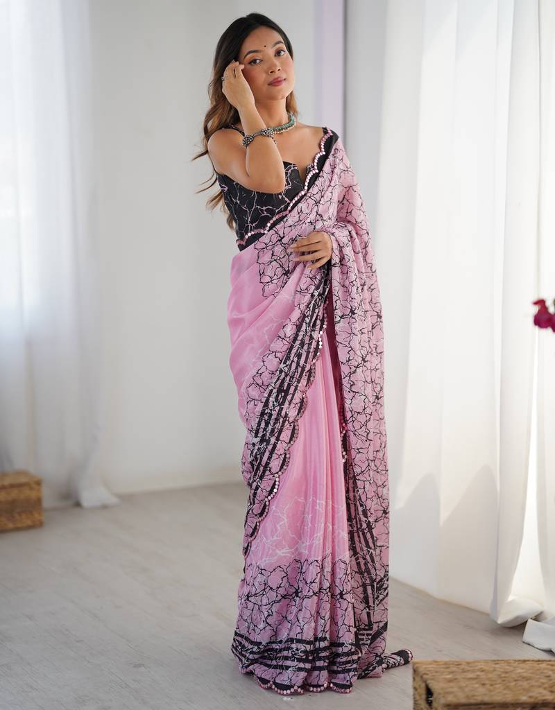 | Product Name | Chiffon Digital Print Scallped Border Foil Mirror Work Saree | |