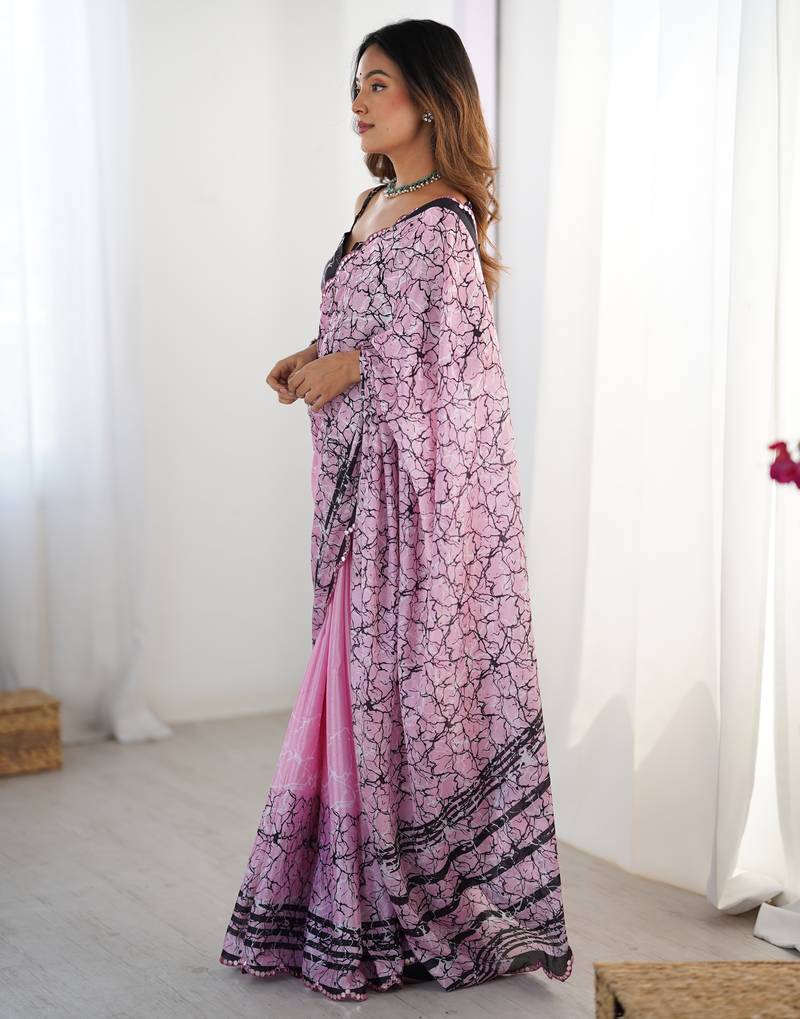 | • | Saree | : | Color- Baby Pink / Fabric- Faux Chiffon |