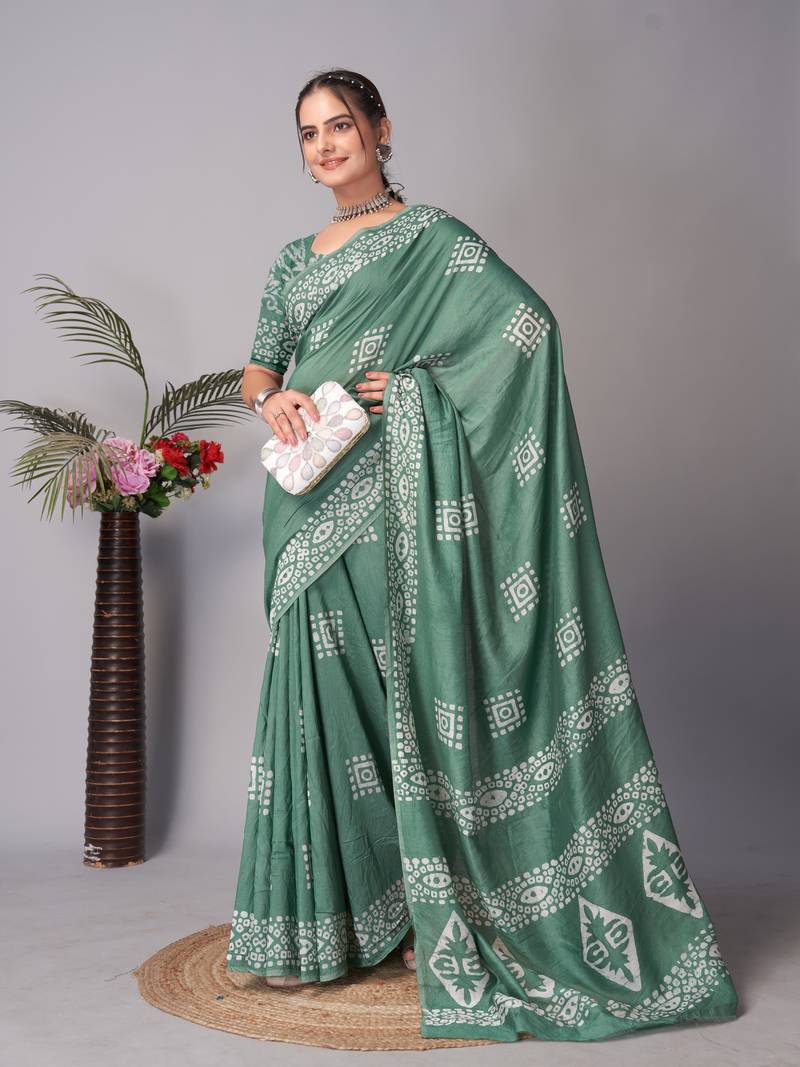 | Product Name | Green Pure Soft Cotton Hand Block Batik Print Saree With Blouse Piece | |