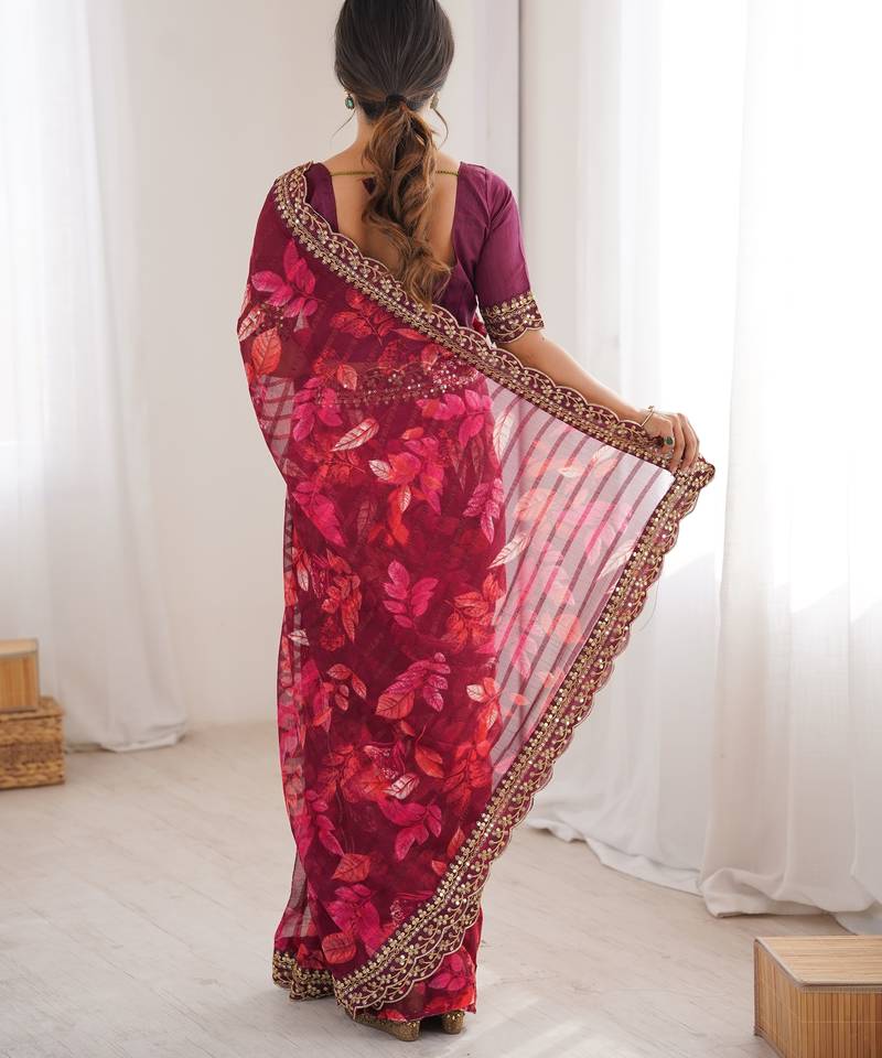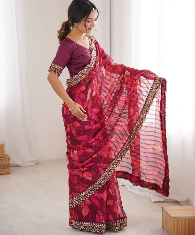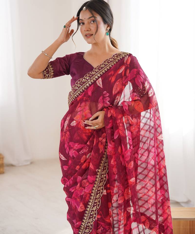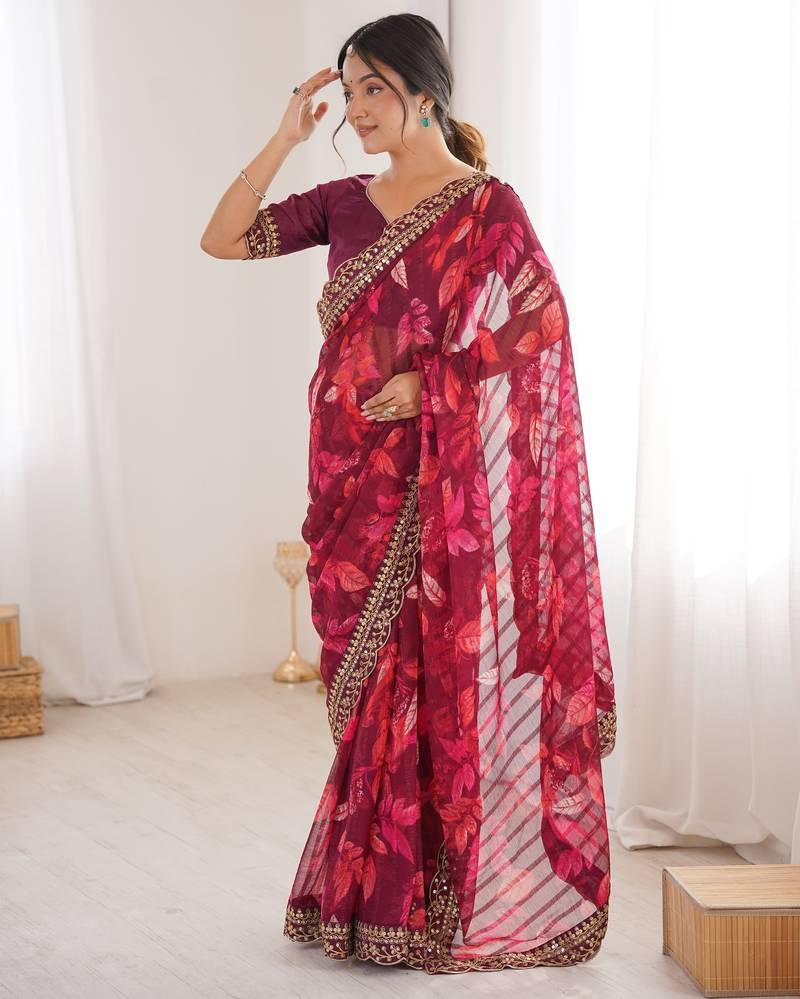 Women printed chiffon georgette partywear saree