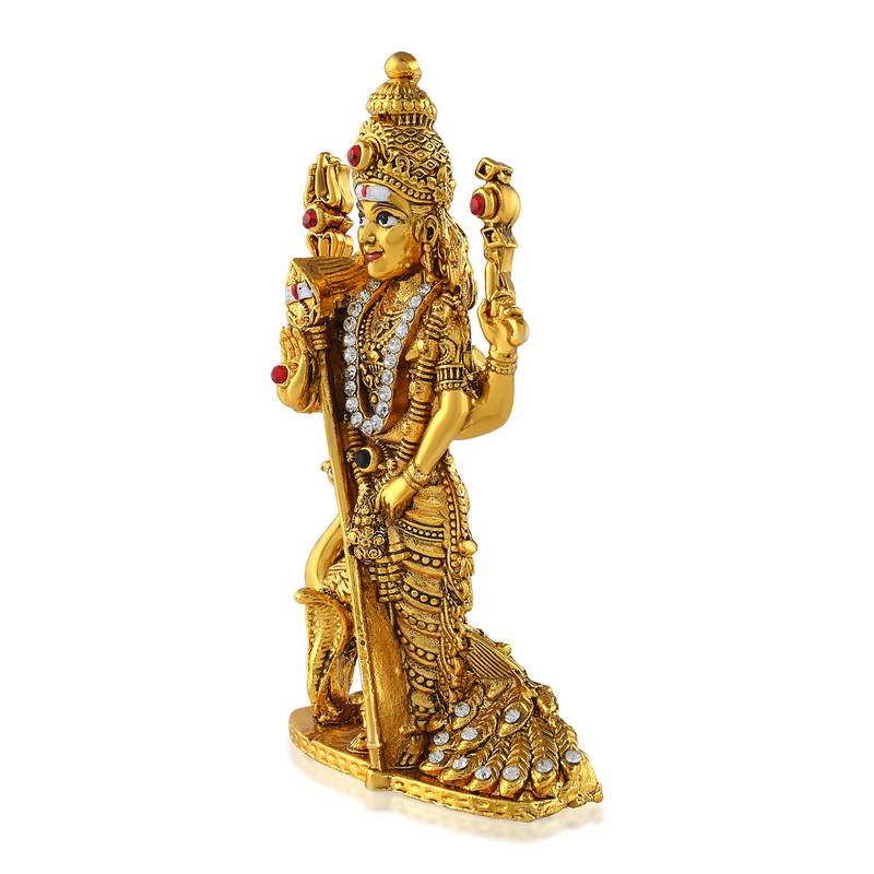 Brass antique gold cz kartikeya murugan idol stand figurine