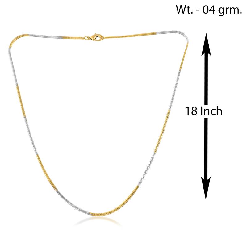 Product Description | Elevate Your Everyday Style With This Ultra Sleek, Dual Tone Snake Chain – A Perfect Fusion Of Simplicity And Sophistication. Crafted From Premium Surgical Grade Stainless Steel And Plated In Radiant Gold And Silver, This Chain Is Designed For Men And Women Of All Age Groups. Whether You're Dressing Up For A Party Or Keeping It Casual, This Chain Adds That Subtle Sparkle To Your Look. Modern, Minimal, And Multi Occasion – It's Not Just Jewelry, It's A Vibe. |