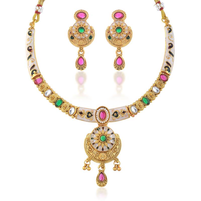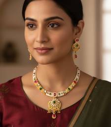 | Product Name | Brass Gold Kundan Meenakari Thewa Necklace Set For Women | |