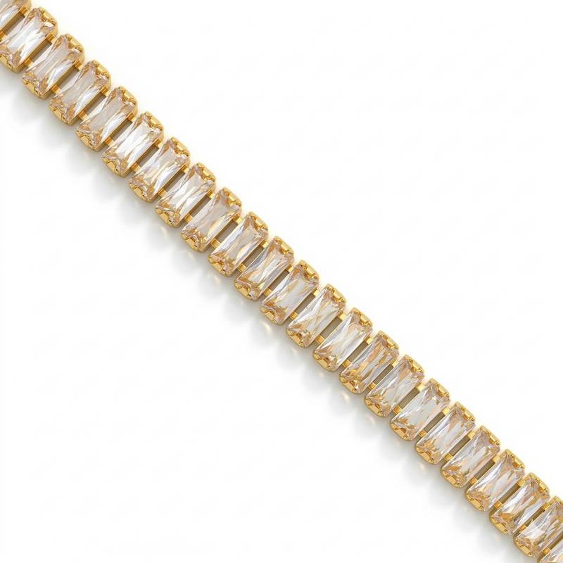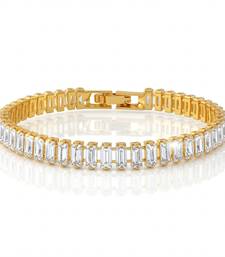 Make A Striking Style Statement With This Exquisite Brass Bracelet, Plated In Luxurious Micron Gold And Adorned With Sparkling White Imitation Diamonds. The Meticulously Arranged Baguette Cut Shaped Cut Stones Create A Dazzling Rich Effect That Catches Light Beautifully. This Versatile Piece Seamlessly Transitions From Daily Wear To Special Occasions, Making It Perfect For Office, College, Or Evening Parties. The Secure Lobster Clasp Ensures Comfortable Wear, While The Adjustable Chain Allows For A Perfect Fit. The Bracelet's Elegant Design Combines Contemporary Aesthetics With Timeless Appeal, Making It An Ideal Accessory For Both Traditional And Modern Outfits. Whether You're Looking To Add A Pop Of Colour To Your Everyday Ensemble Or Searching For That Perfect Gift For A Special Occasion, This Bracelet Delivers Both Style And Sophistication. Its Premium Finish And Attention To Detail Make It A Cherished Addition To Any Jewellery Collection.