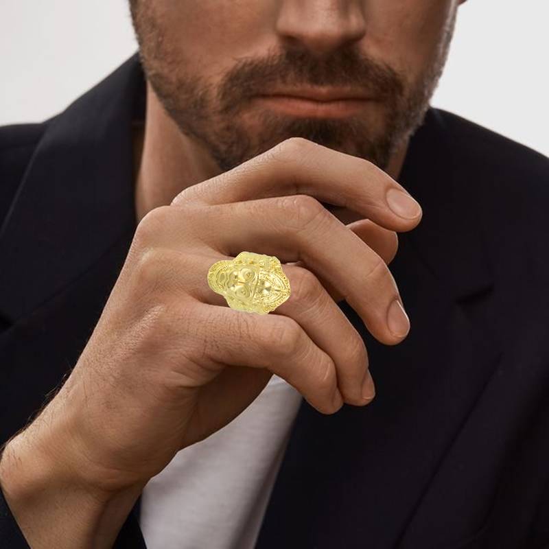 Product Description | Unleash The Power Of Devotion And Strength With This Hanuman Bajrang Bali Bold Finger Ring For Men, A Masterpiece Of Spiritual Craftsmanship And Masculine Elegance. Sculpted From Premium Brass And Finished With Micron Gold Plating, This Ring Radiates Divine Energy And Regal Charm. At Its Heart Lies A Meticulously Carved Face Of Lord Hanuman, The Revered Deity Known For His Unwavering Courage, Loyalty, And Protection. Every Contour—From The Furrowed Brow To The Serene Smile—Is Brought To Life Using Italian Computer Aided Jewellery Making Machines, Ensuring Precision And Depth That Elevate This Ring Into A Wearable Sculpture. Designed To Be Thick, Heavy, And Bold, It’s More Than Just Jewellery—It’s A Statement Of Faith, Resilience, And Inner Power. Whether Worn During Rituals, Festivals, Or Daily Life, This Ring Serves As A Spiritual Shield, Believed To: Protect The Wearer From Negative Energies And Evil Influences Enhance Mental Clarity, Physical Strength, And Emotional Stability Inspire Devotion, Discipline, And Fearlessness In The Face Of Adversity Perfect For Men Who Value Tradition, Symbolism, And Bold Aesthetics, This Hanuman Ring Complements Ethnic Attire And Adds A Divine Touch To Formal Ensembles. A Meaningful Gift For Spiritual Seekers, Devotees, Or Anyone Drawn To The Legacy Of Bajrang Bali. |