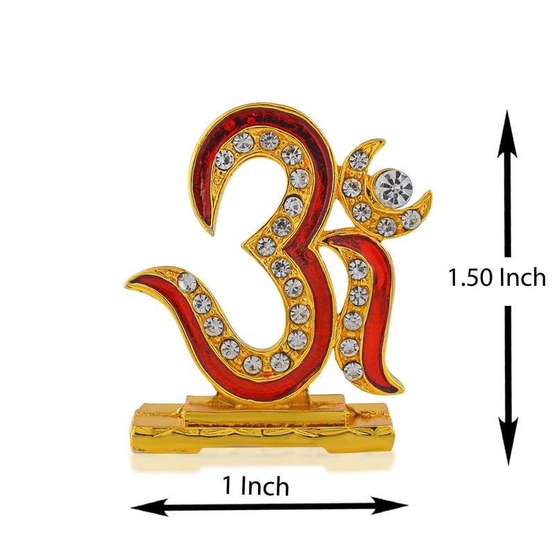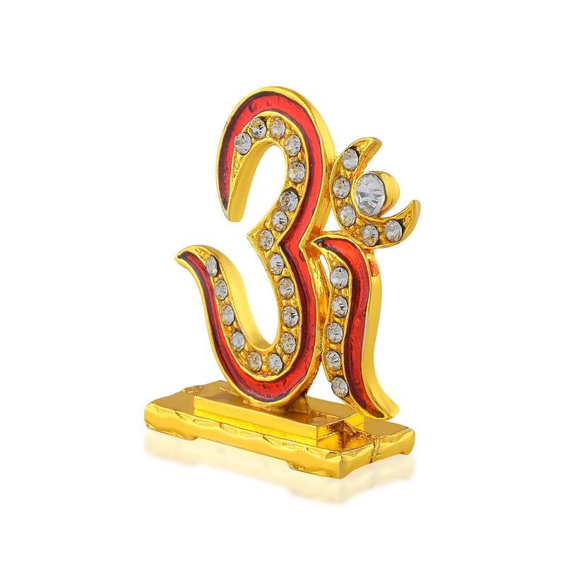| Product Name | Brass Goldplated Cz Red Meenakari Om Stand Idol Fugurine Showpiece | |