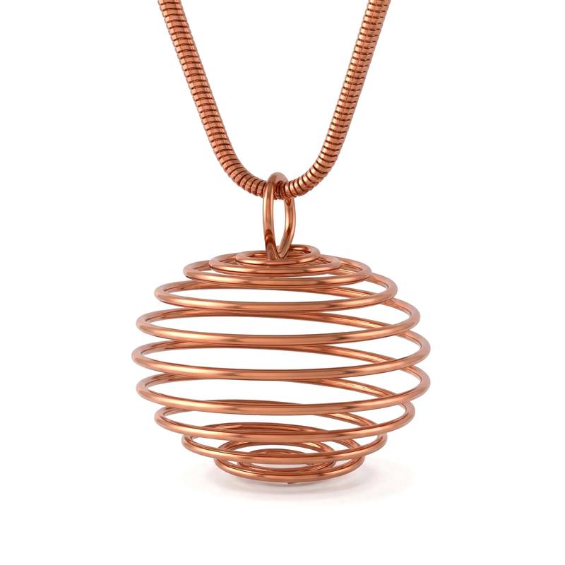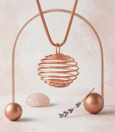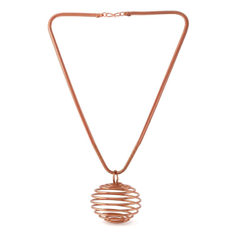 Elevate Your Style With This Handcrafted Pure Copper Pendant And Chain, Designed With A Unique Spiral Orb Motif That Symbolizes Infinity, Energy Flow, And Harmony. The Pendant’s Cage Like Spherical Design Is Inspired By Ancient Wirework Artistry, Reflecting Both Geometric Precision And Natural Balance. Copper Jewellery Has Been Cherished For Centuries Across Cultures, Not Only For Its Warm Metallic Glow But Also For Its Supposed Wellness Benefits. Traditionally, Copper Is Believed To Help Balance Energy, Improve Circulation, And Promote Overall Vitality. Many Wearers Consider Copper Jewellery A Natural Way To Connect With Grounding Energies While Enjoying Its Timeless Aesthetic. This Pendant, Paired With A Matching Copper Chain, Is More Than An Accessory—It’s A Statement Of Artistry, Heritage, And Holistic Living. Whether Worn With Ethnic Attire Or Modern Outfits, It Adds A Touch Of Rustic Elegance And Spiritual Resonance.