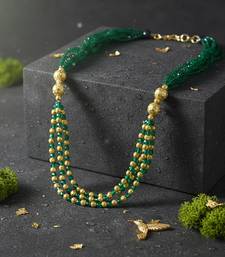 | Product Description | Elevate Your Bridal Or Festive Look With This Exquisite Multi Strand Faux Emerald Necklace. Crafted With Precision, The Necklace Features Lush Emerald Green Beads Interwoven With Intricately Designed Brass Gold Plated Beads. The Centerpiece Showcases Three Thick Cascading Strands, Beautifully Suspended By Four Thin Emerald Beaded Strands, Creating A Regal Layered Effect. Perfect For Weddings, Receptions, And Traditional Occasions, This Necklace Blends Timeless Craftsmanship With A Luxurious Modern Appeal. Designed To Complement Ethnic Attire, It Adds A Touch Of Elegance And Grandeur To Every Ensemble. |