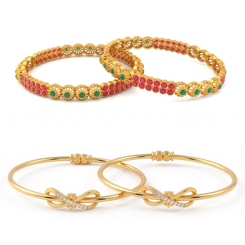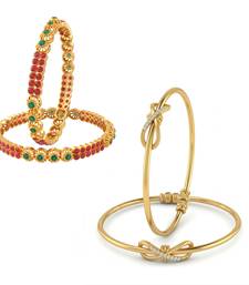 Celebrate The Perfect Blend Of Tradition And Modern Elegance With This Exquisite Combo Set Of Bangles. Crafted From Premium Brass With Micron Gold Plating, These Bangles Are Designed To Be Skin Safe And Anti Allergy, Ensuring Comfort For Everyday Wear. The Traditional Kada Bangle Is Studded With Faux Ruby And Emerald Stones In A Timeless Design, Ideal For Weddings, Engagements, And Festive Occasions. Paired With A Sleek Imitation Diamond Studded Bracelet, This Set Offers A Versatile Style That Complements Both Ethnic And Contemporary Outfits. Whether For Self Wear Or Gifting, This Combo Makes A Thoughtful Choice For Birthdays, Anniversaries, Bridal Trousseau, Or Festive Celebrations. A Must Have Addition To Every Woman’s Jewelry Collection.