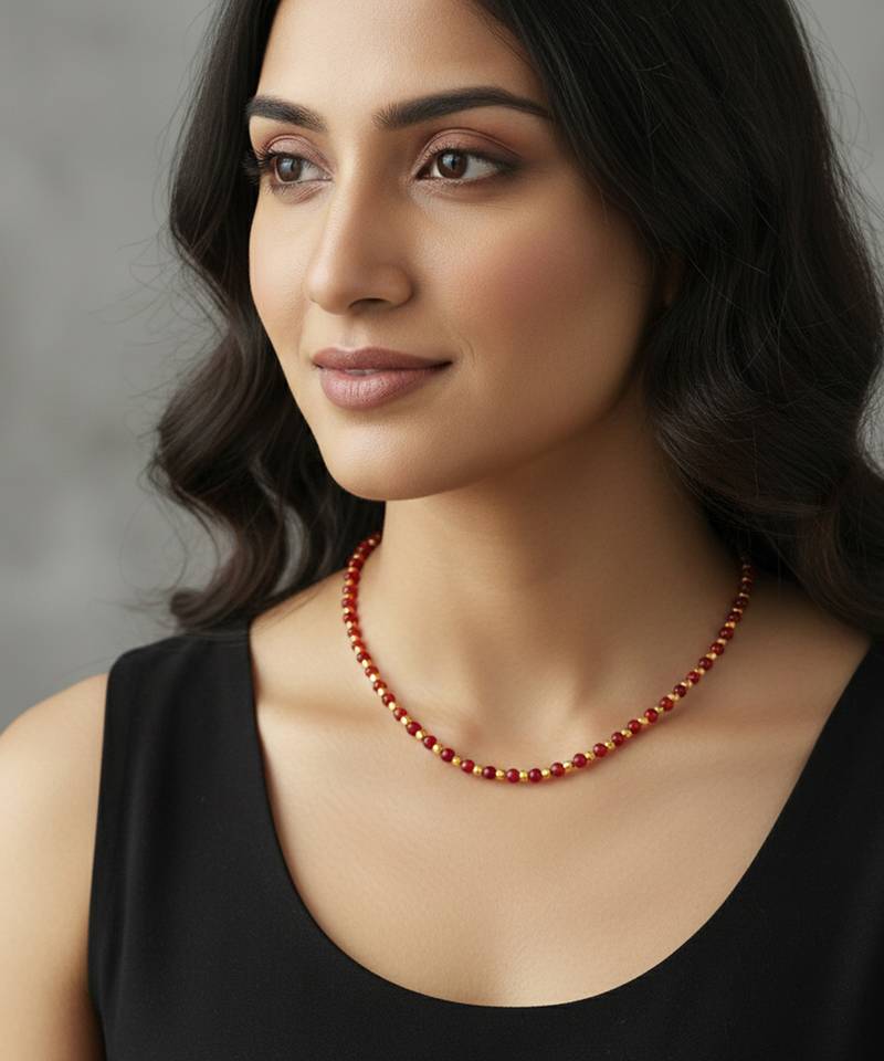 | Product Description | Add Timeless Elegance To Your Look With This Created Emerald Bead Necklace (लैब क्रिएटेड रूबी हार), Designed To Resemble The Beauty Of Real Emeralds. Crafted With 4mm Round Ball Beads In A Vibrant Green Shade, This Necklace Is Enhanced With Brass Golden Beads For A Luxurious Contrast. At 22 Inches In Length, It Drapes Gracefully On The Neckline, Making It Perfect For Festive Occasions Like Diwali, Karwa Chauth, Weddings, And Parties, As Well As Daily Wear With Saree, Lehenga, Or Modern Outfits. The Polished Emerald Like Beads Shimmer With Gemstone Appeal, While The Golden Accents Add Richness And Sophistication. Whether You’re Searching For An Affordable Emerald Look Necklace, A Traditional Jewelry Piece For Ethnic Wear, Or A Thoughtful Gift For Wife, Girlfriend, Or Sister, This Necklace Is A Versatile Choice That Blends Tradition With Modern Style. |