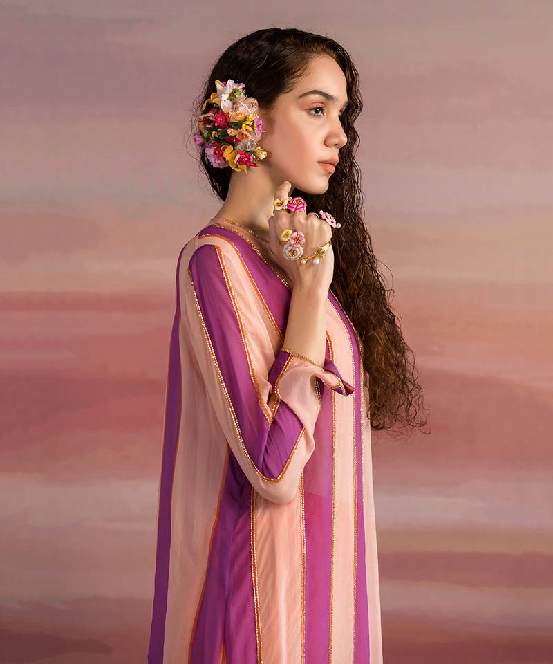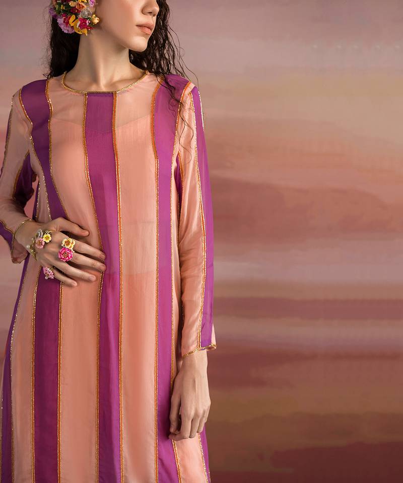 | Product Name | Printed Line Embroidered Stripe Kurta With Bralette And Orange Pant | |