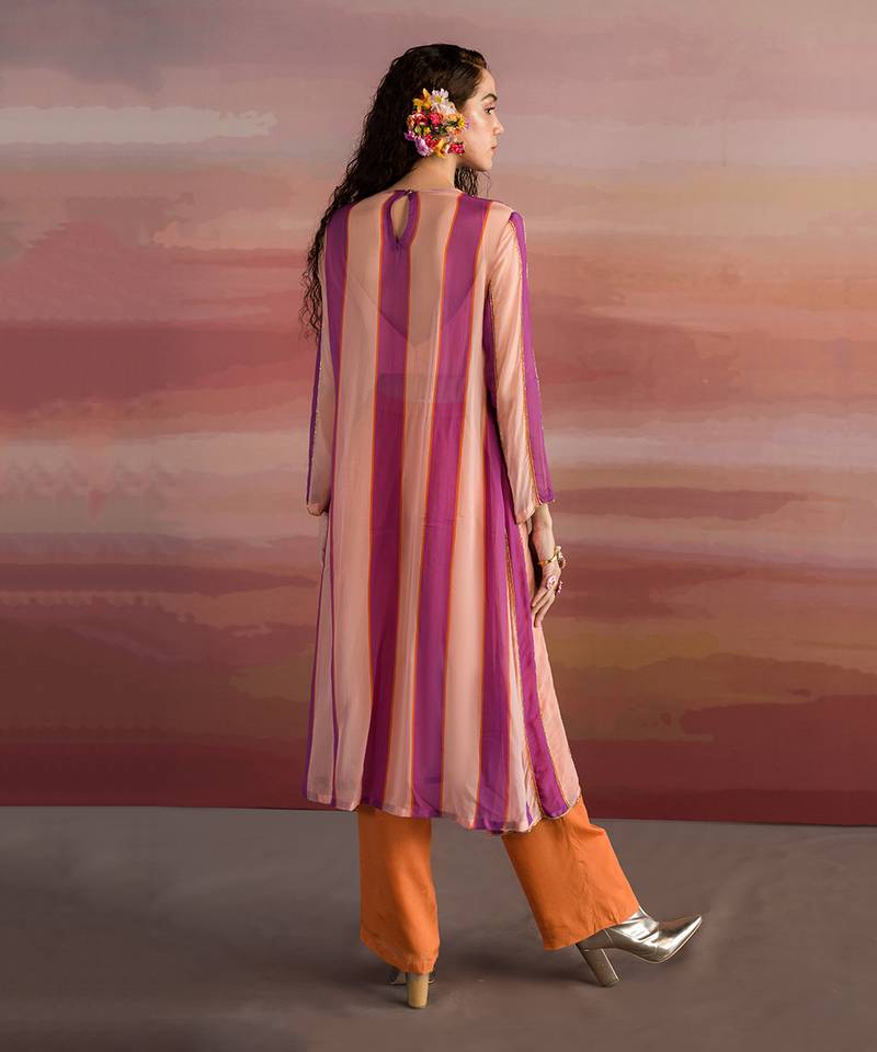 | Product Description | Printed Line Embroidered Stripe Kurta With Bralette And Orange Pant |