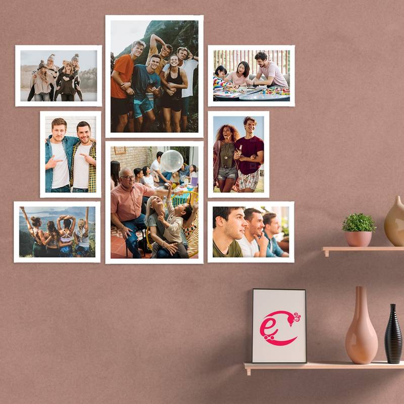 Ecraftindia memory wall collage photo frame - set of 8 photo frames for 6 photos of 5"x7", 2 photos of 8"x10"