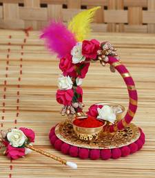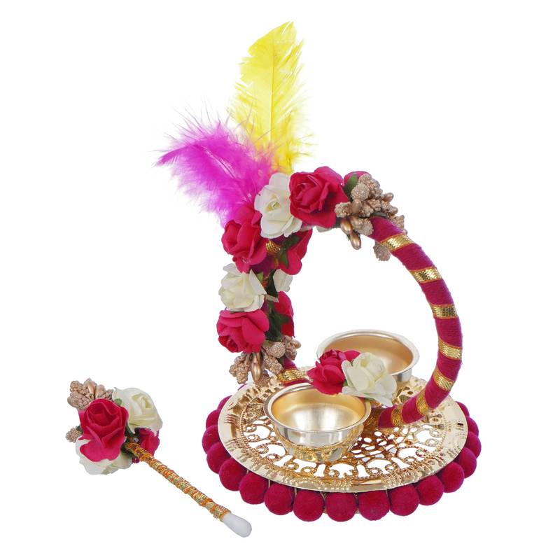 One handcrafted decorative roli tikka holder with designer stick and colorful feathers