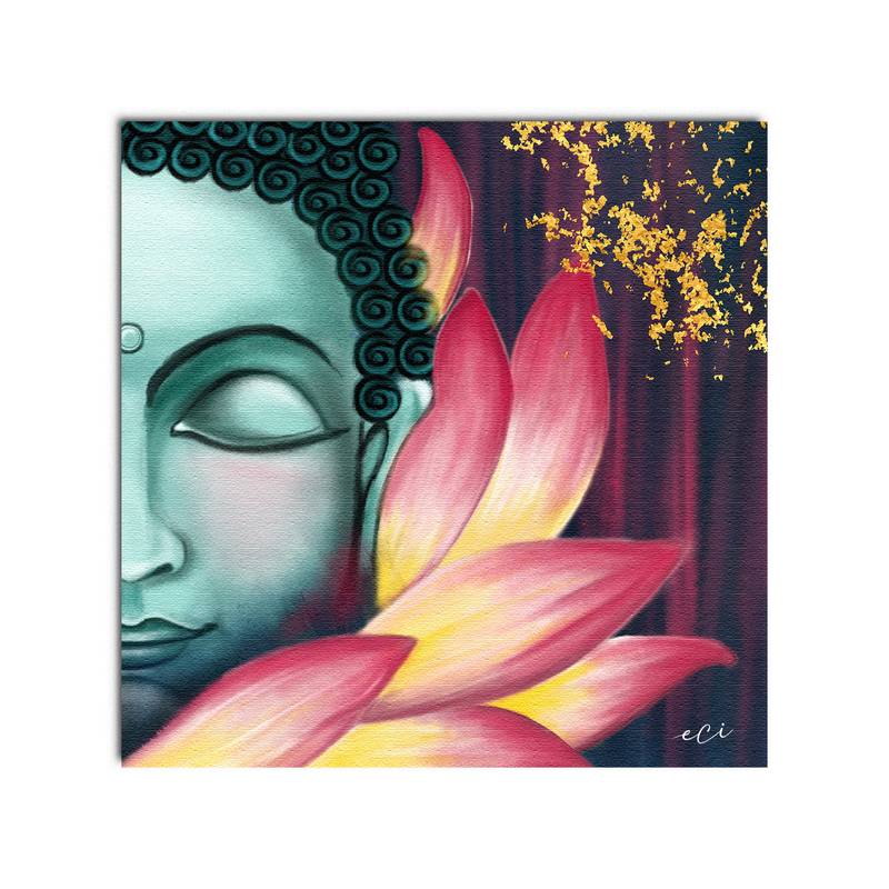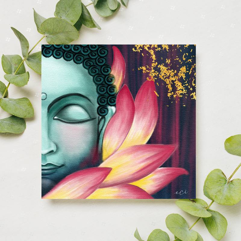 Peaceful gautam buddha with lotus original design canvas printed wall painting