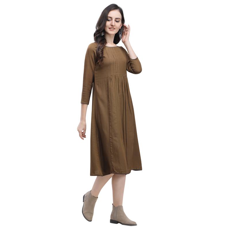 | Product Name | Brown Plain Blended Cotton Long Dresses | |