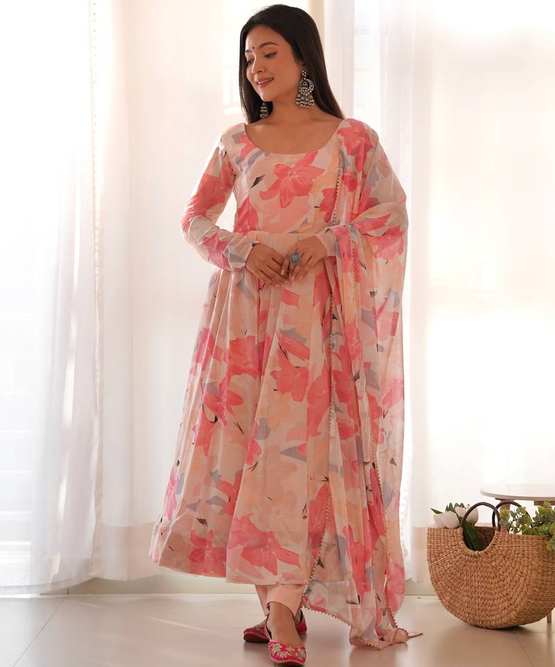 | Product Name | Beautiful Baby Pink Multi Color Georgette Three Piece Anarkali Suit | |