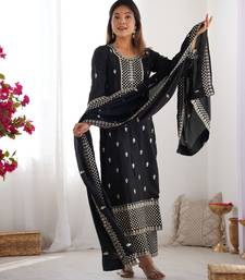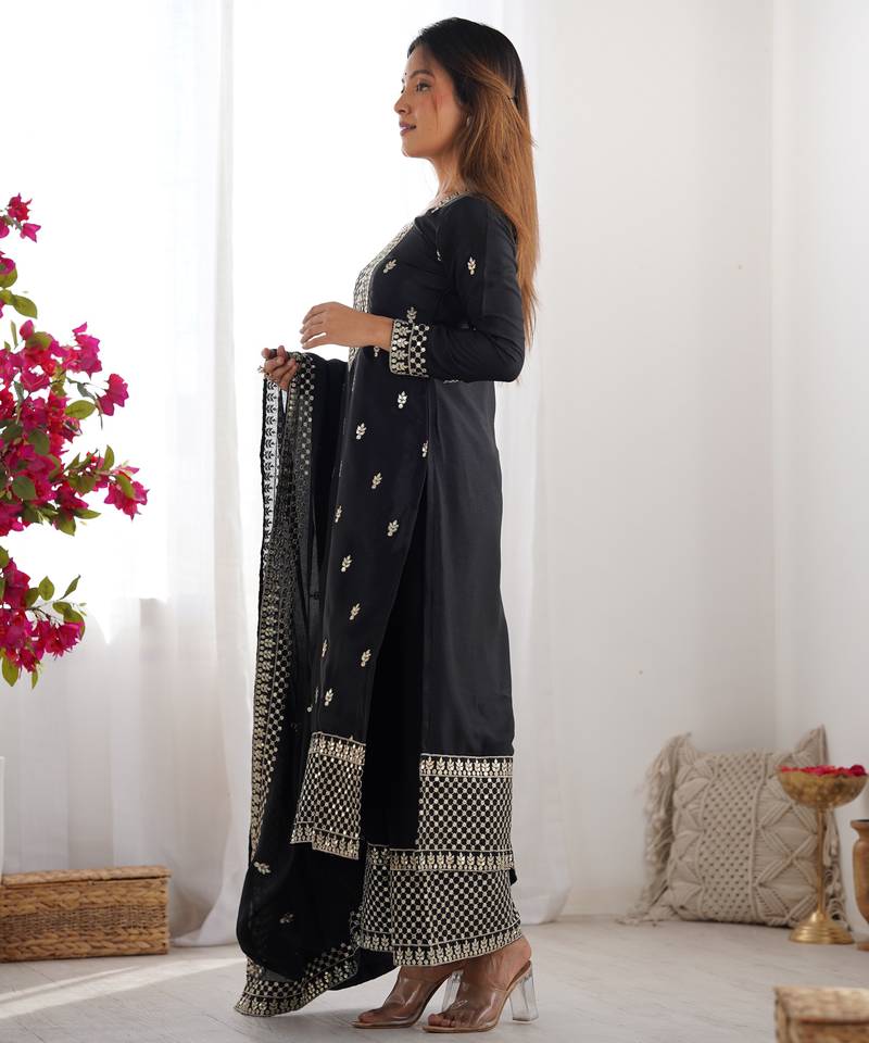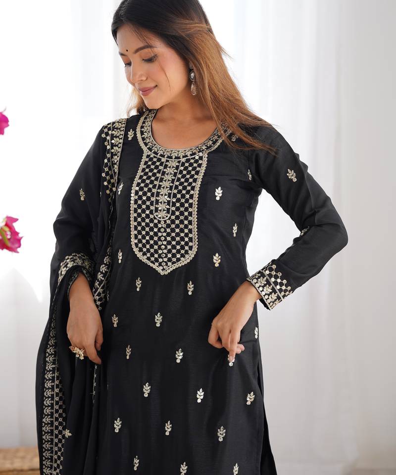 | Product Name | Black Color Chinon Silk Three Piece Kurti Suit | |