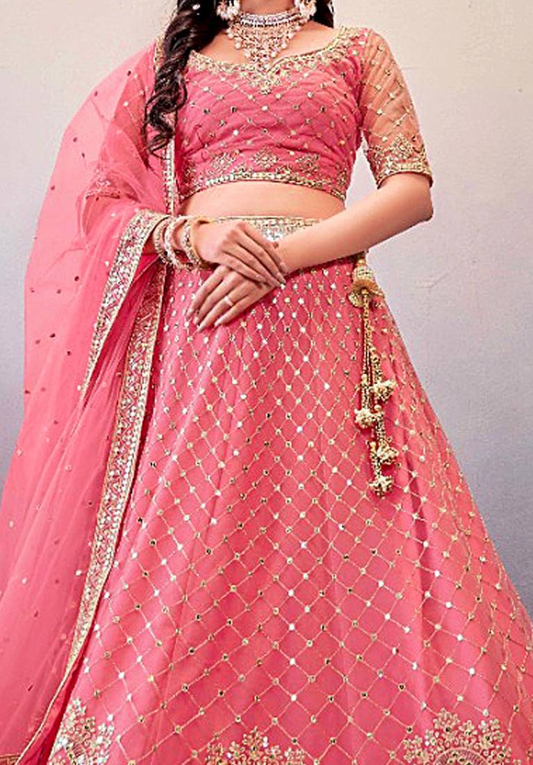 Eilara women's elegant pink sequins butterfiy net lehenga choli
