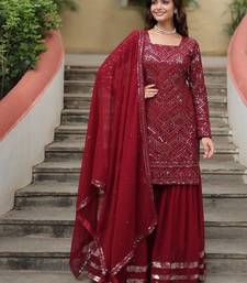 Maroon premium designer readymade sharara suit with dupatta stitched