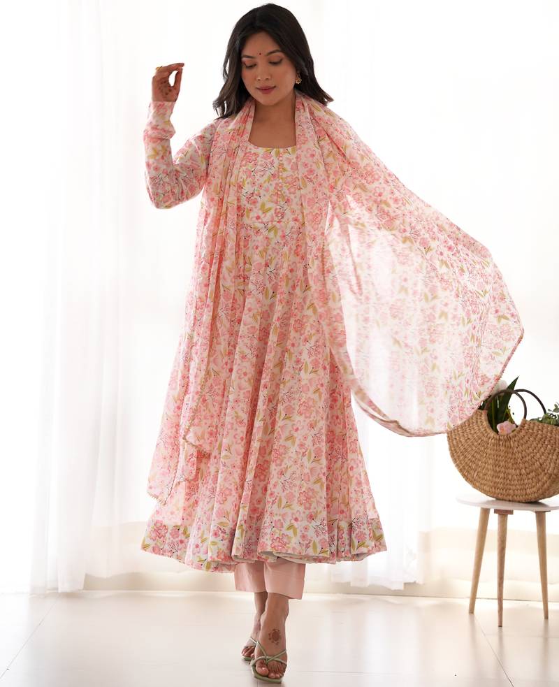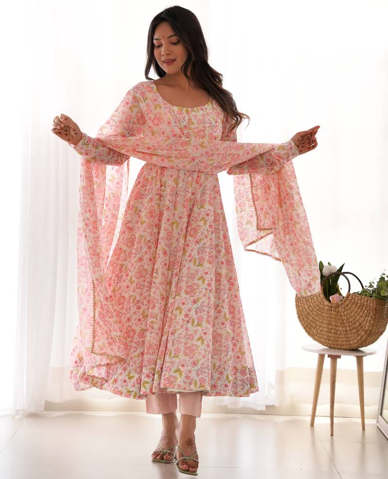 | Product Name | Multi Pink Color Chiffon Floral Print Three Piece Anarkali Suit | |