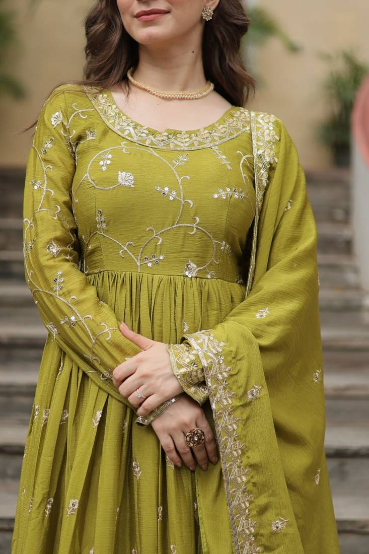 | • | Kameez | : | Color- Mehendi / Fabric- Chiffon |