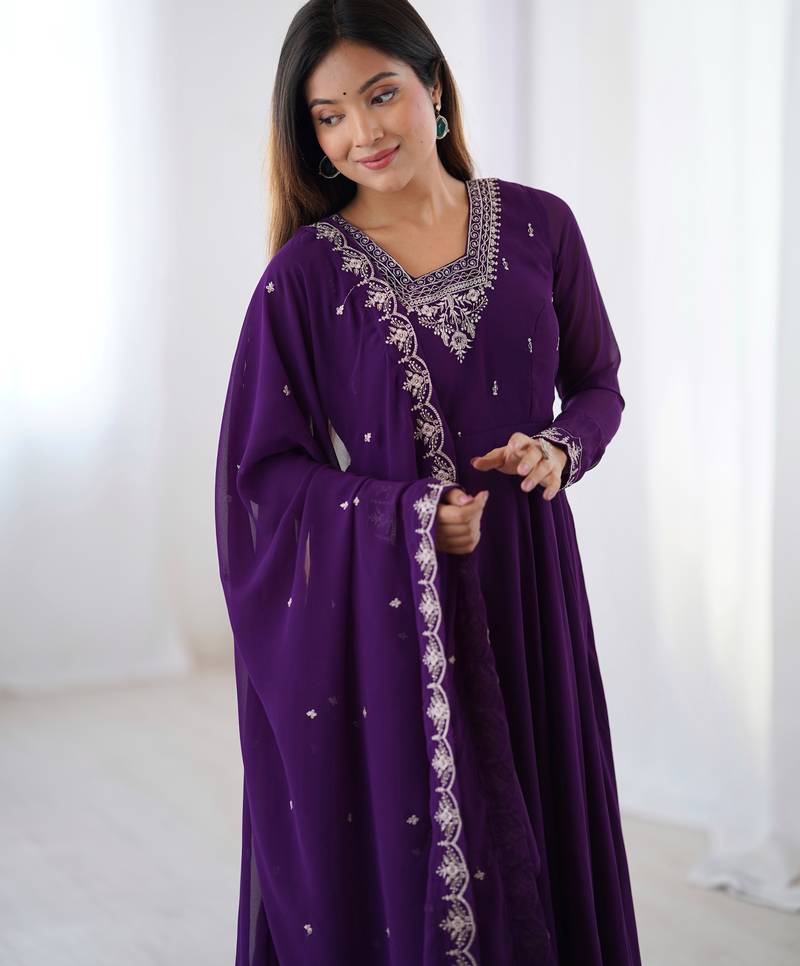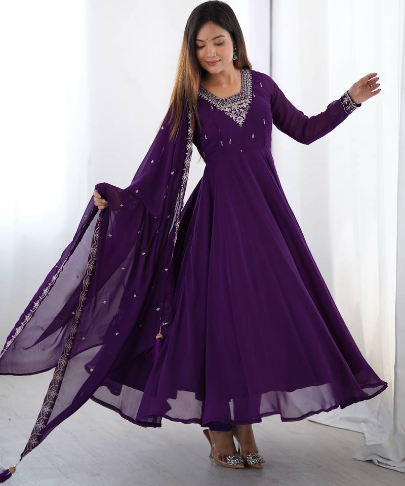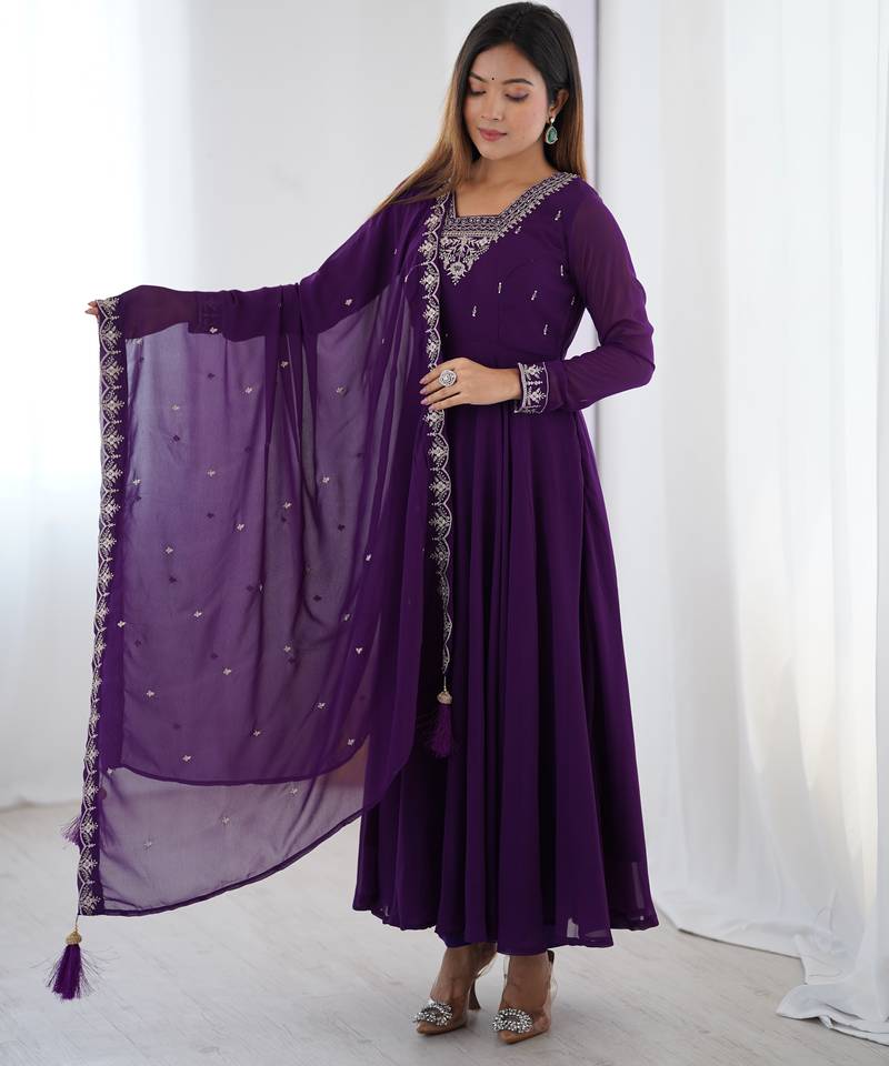 | Product Name | Purple Designer Embroidery Beads And Zari Work Gown With Dupatta | |