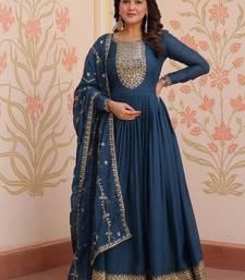 Rama blue star georgette zari sequins embroidered gown with dupatta stitched