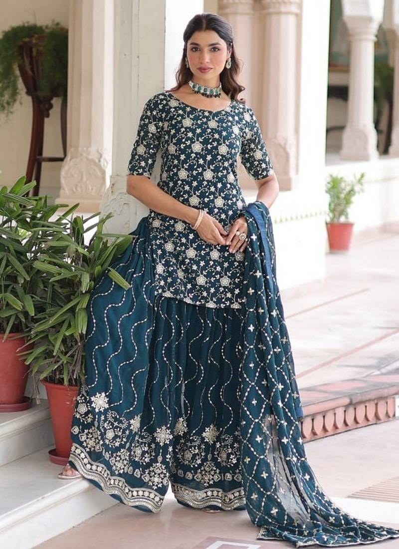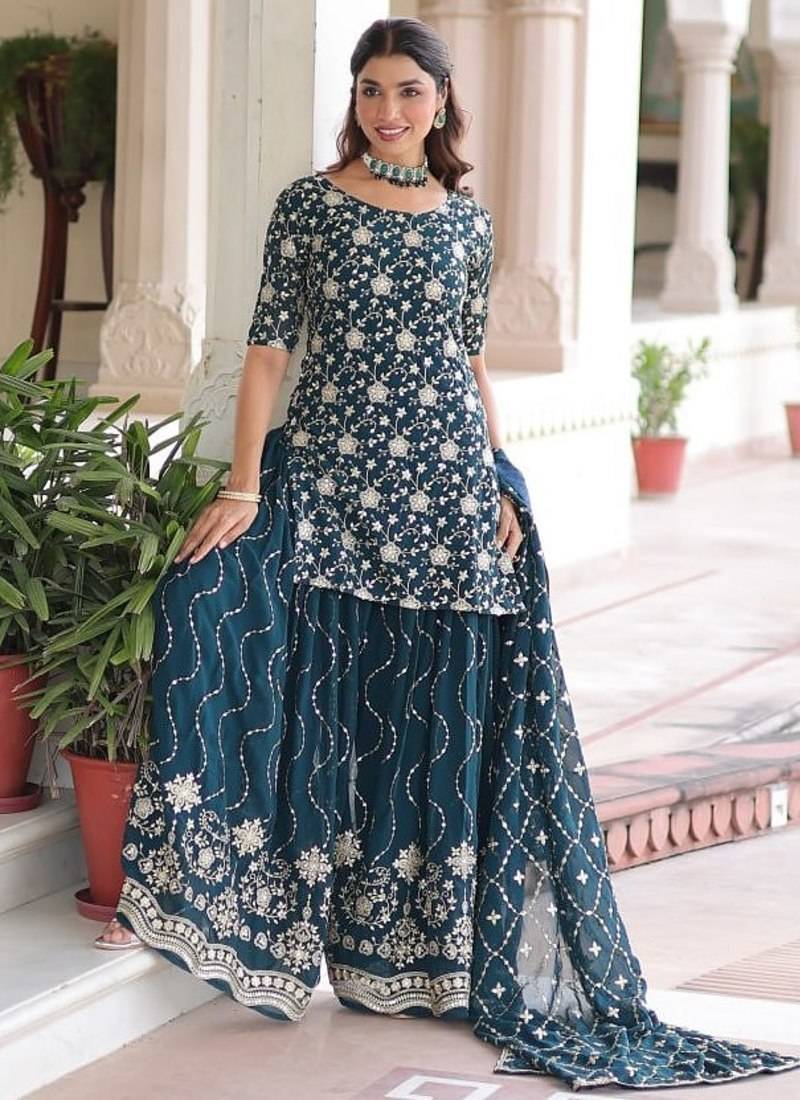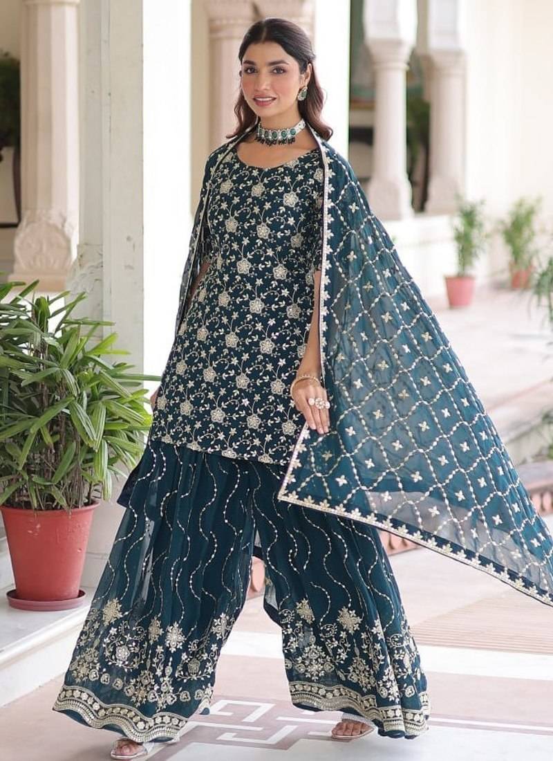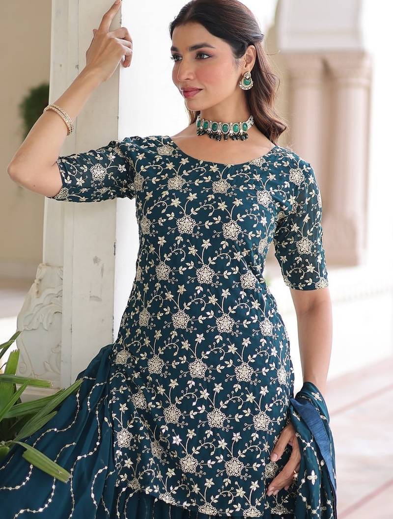 | • | Kameez | : | Color- Teal / Fabric- Faux Georgette |