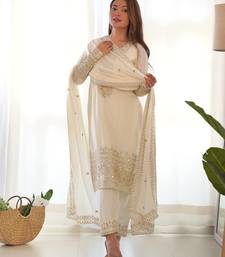 | Product Name | White Color Chinon Silk Three Piece Kurti Suit | |