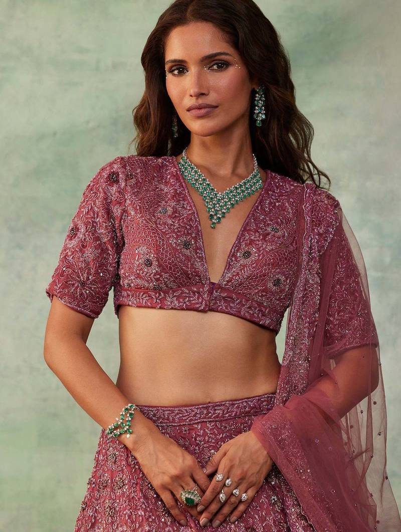 Product Name | Women's Pink Embroidered Chinon Silk Lehenga Set | |