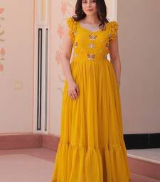 Yellow faux blooming embroidered work gown stitched