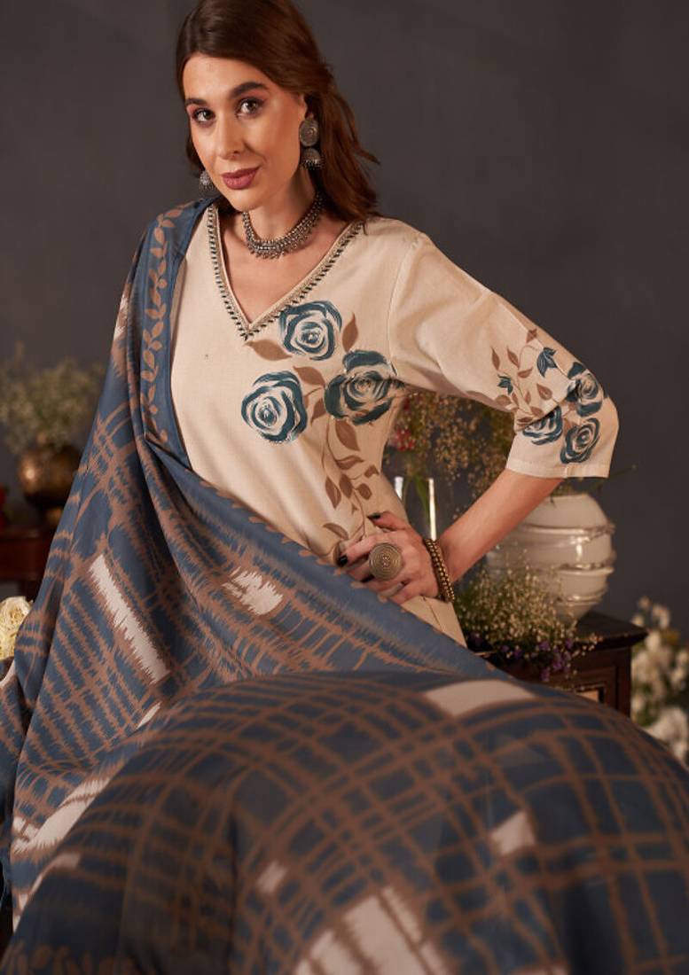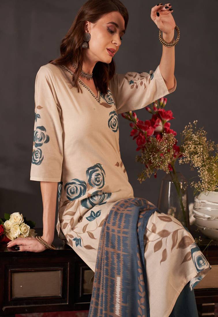 | Product Name | Teal Women Floral Printed Thread Work Pure Cotton Straight Kurta With Trousers Dupatta | |