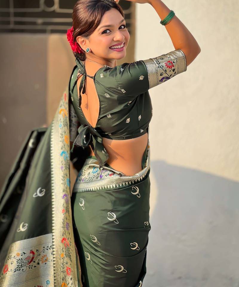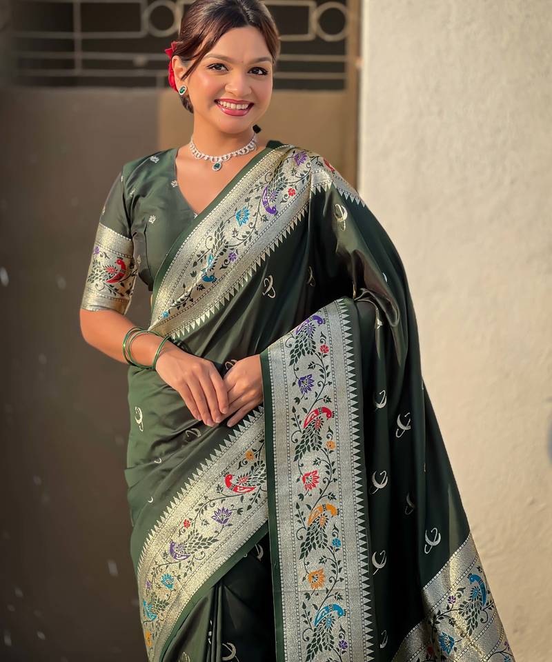 | • | Saree | : | Color- Green / Fabric- Paithani Silk |