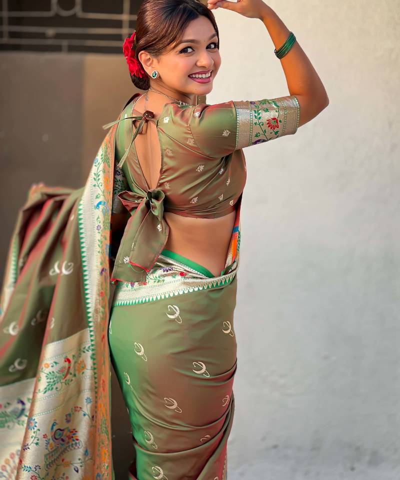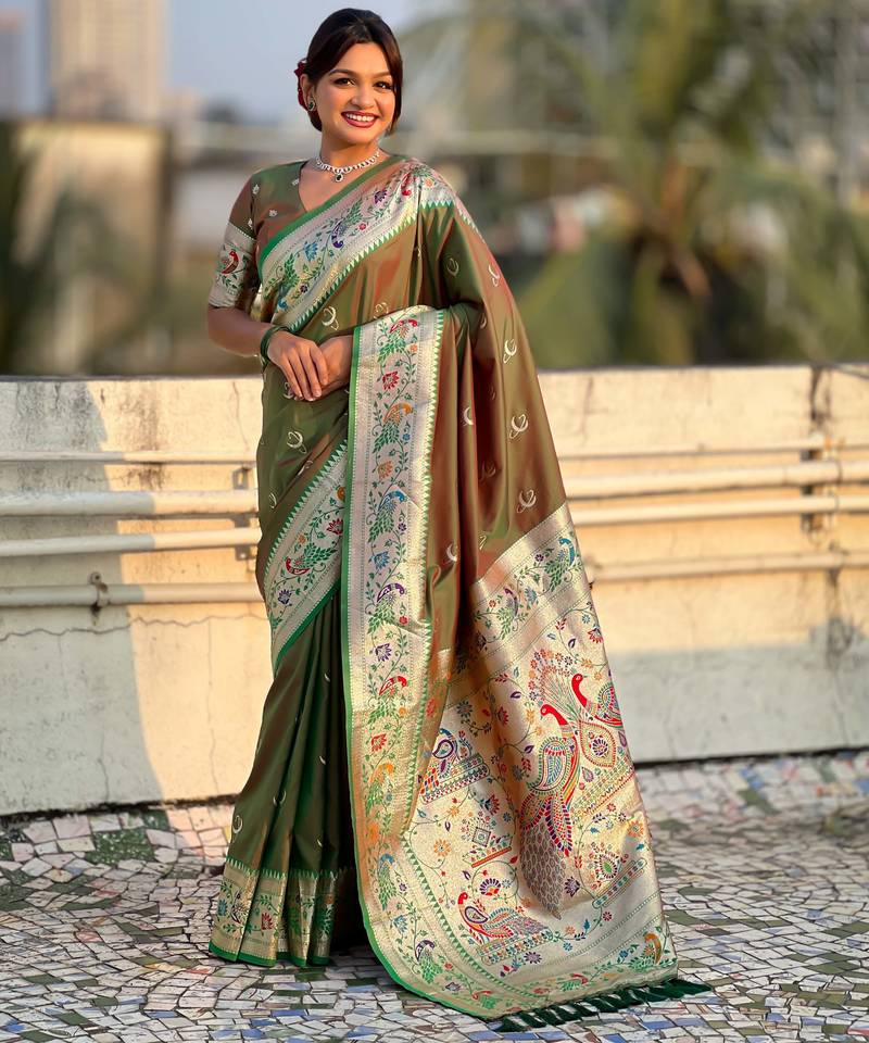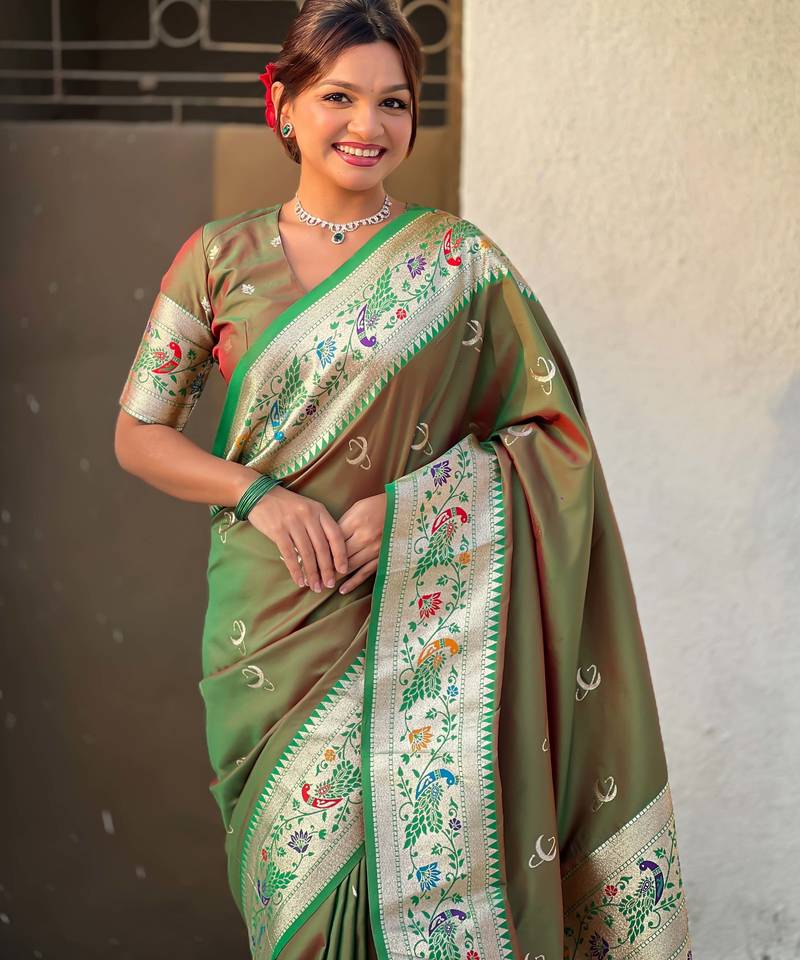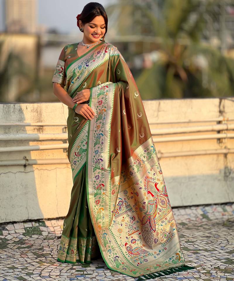 | • | Saree | : | Color- Green / Fabric- Paithani Silk |
